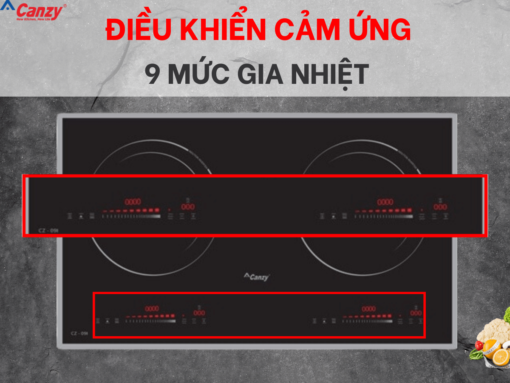 Bếp từ Canzy này thiết kế hệ thống bảng điều khiển cảm ứng dạng slide trượt giúp điều khiển bếp tiện lợi, nhanh chóng. Hệ thống cảm ứng hiện đại, cực nhanh và nhạy, có thể thao tác ngay cả khi tay bạn ướt. Đặc biệt là 2 vùng nấu có 2 bảng điều khiển riêng, mọi thao tác điều khiển bếp được thực hiện độc lập trên mỗi vùng nấu, rất tiện lợi và dễ dùng.