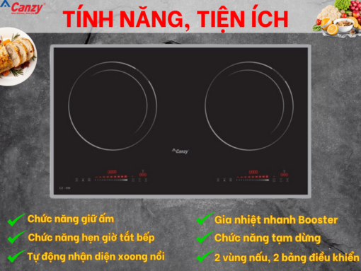 Bếp từ Canzy CZ 09I sở hữu thiết kế đẹp và tính năng, công nghệ hiện đại, mang đến trải nghiệm nấu nướng nhanh chóng, tiện lợi và an toàn. Bếp có tính năng gia nhiệt nhanh, tạm dừng, hẹn giờ nấu, khoá an toàn, tự động tắt bếp khi có sự cố tràn, quá nhiệt quá áp…