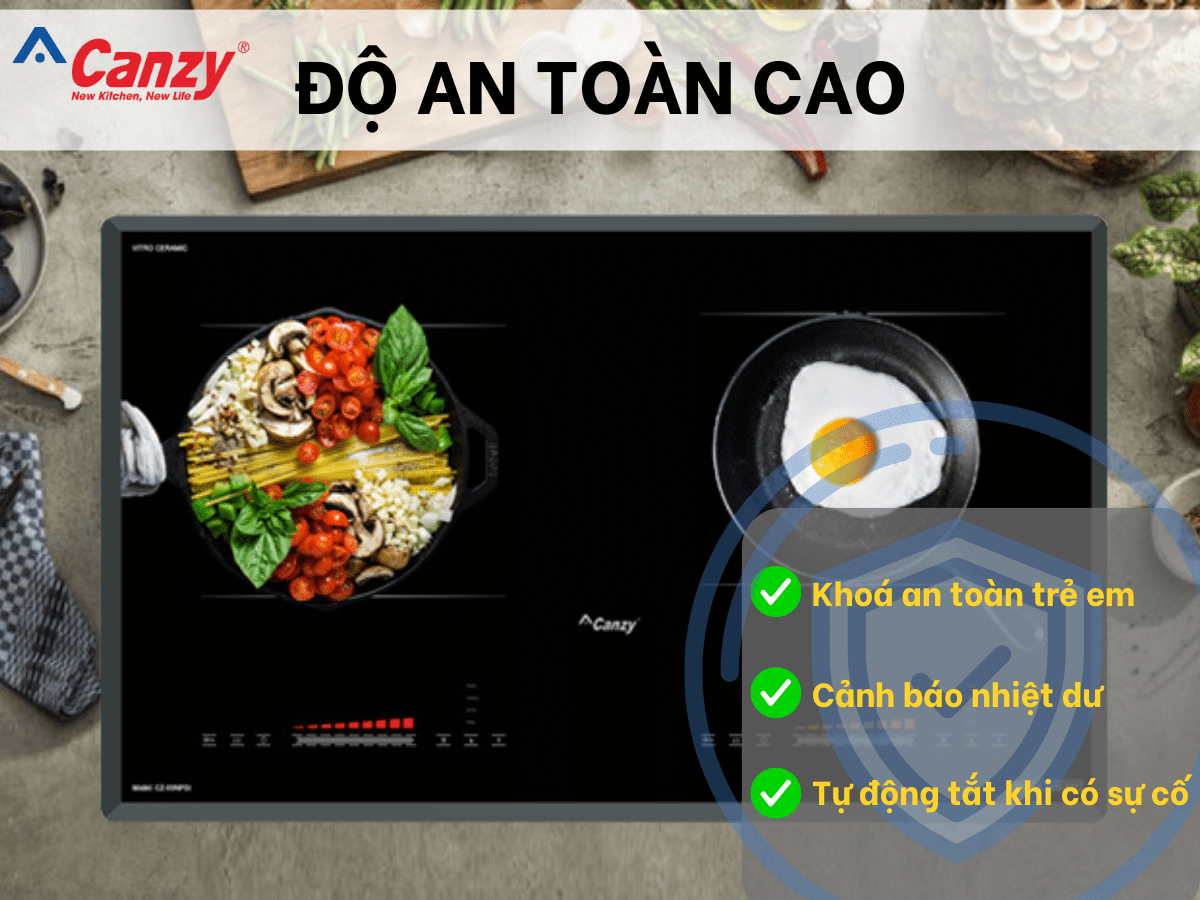Bếp từ Canzy CZ 88NPSI có hệ thống cảm biến hiện đại dưới mỗi vùng nấu, có thể phát hiện các sự cố như có nước hoặc thức ăn tràn xuống bảng điều khiển, nồi bị cháy hoặc bị cạn nước, hay bếp bị quá nhiệt, quá áp, hoặc không có nồi đặt trên bếp. Trong những trường hợp này, bếp sẽ tự động ngắt công suất để đảm bảo an toàn cho bếp, an toàn của người dùng cũng như tránh lãng phí điện năng.
