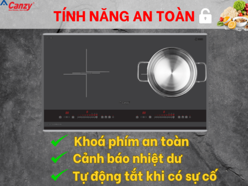 Bếp từ Canzy CZ 898B-62ID có hệ thống cảm biến hiện đại dưới mỗi vùng nấu, có thể phát hiện các sự cố như có nước hoặc thức ăn tràn xuống bảng điều khiển, nồi bị cháy hoặc bị cạn nước, hay bếp bị quá nhiệt, quá áp, hoặc không có nồi đặt trên bếp. Trong những trường hợp này, bếp sẽ tự động ngắt công suất để đảm bảo an toàn cho bếp, an toàn của người dùng cũng như tránh lãng phí điện năng.