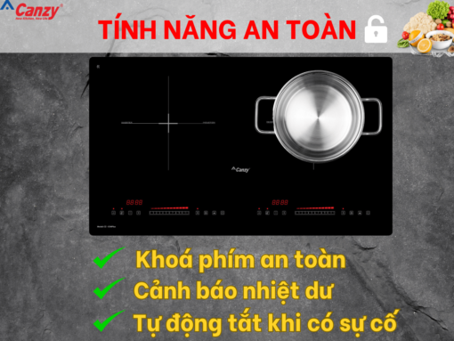 Bếp từ Canzy CZ IC99Plus có hệ thống cảm biến hiện đại dưới mỗi vùng nấu, có thể phát hiện các sự cố như có nước hoặc thức ăn tràn xuống bảng điều khiển, nồi bị cháy hoặc bị cạn nước, hay bếp bị quá nhiệt, quá áp, hoặc không có nồi đặt trên bếp. Trong những trường hợp này, bếp sẽ tự động ngắt công suất để đảm bảo an toàn cho bếp, an toàn của người dùng cũng như tránh lãng phí điện năng.