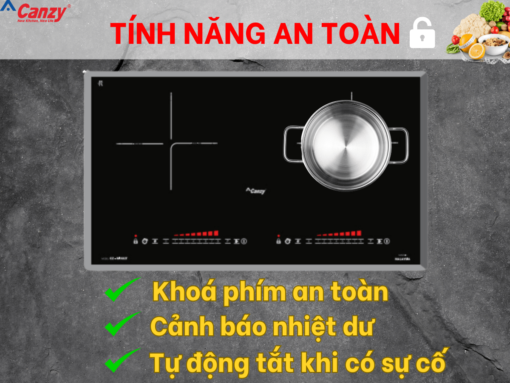 Bếp từ Canzy CZ MIX82T có hệ thống cảm biến hiện đại dưới mỗi vùng nấu, có thể phát hiện các sự cố như có nước hoặc thức ăn tràn xuống bảng điều khiển, nồi bị cháy hoặc bị cạn nước, hay bếp bị quá nhiệt, quá áp, hoặc không có nồi đặt trên bếp. Trong những trường hợp này, bếp sẽ tự động ngắt công suất để đảm bảo an toàn cho bếp, an toàn của người dùng cũng như tránh lãng phí điện năng.