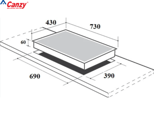 Kích thước lắp đặt (DxR): 690 x 390 mm
