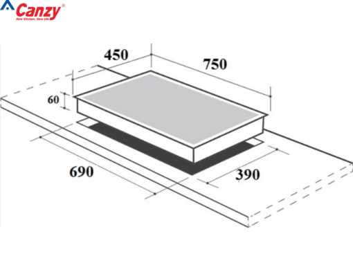 Kích thước lắp đặt (DxR): 690 x 390 mm
