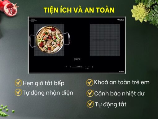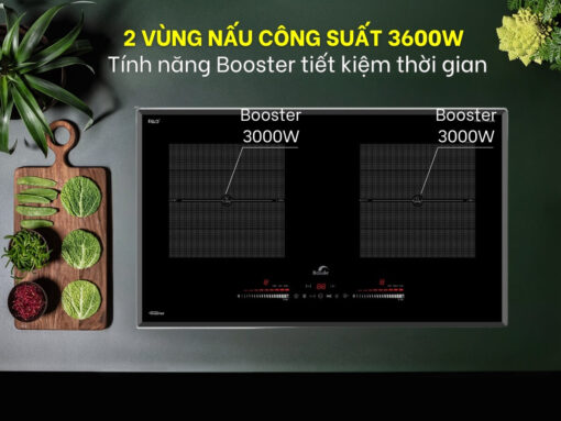2 vùng nấu công suất 3600W, có chức năng Booster nấu nhanh
