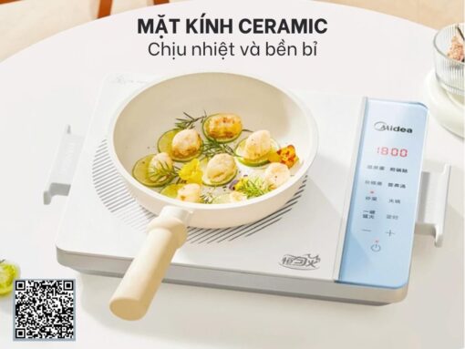 Bếp từ đơn Midea MIC221TLBGBE thiết kế để bàn nhỏ gọn, ngang 35cm phù hợp với gian bếp nhỏ. Mặt kính Ceramic chịu nhiệt tốt, dễ lau chùi. Công suất tối đa 2200W giúp nấu nướng nhanh chóng, 6 chế độ nấu tự động cùng 9 mức nhiệt dễ dàng điều chỉnh đáp ứng nhu cầu nấu nướng đa dạng. Đặc biệt là có chức năng đun sôi đều nhiệt ở mức công suất thấp giúp nấu nướng thuận tiện hơn. Bảng điều khiển cảm ứng chạm siêu nhạy, điều khiển bếp dễ dàng, tiện lợ. Bếp còn được trang bị nhiều tính năng như: hẹn giờ, tạm dừng, tự ngắt khi không có nồi hoặc quá nhiệt…