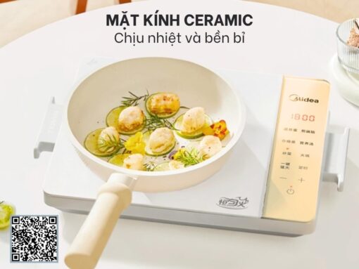 Bếp từ đơn Midea MIC221TLBGOE thiết kế để bàn nhỏ gọn, ngang 35cm phù hợp với gian bếp nhỏ. Mặt kính Ceramic chịu nhiệt tốt, dễ lau chùi. Công suất tối đa 2200W giúp nấu nướng nhanh chóng, 6 chế độ nấu tự động cùng 9 mức nhiệt dễ dàng điều chỉnh đáp ứng nhu cầu nấu nướng đa dạng. Đặc biệt là có chức năng đun sôi đều nhiệt ở mức công suất thấp giúp nấu nướng thuận tiện hơn. Bảng điều khiển cảm ứng chạm siêu nhạy, điều khiển bếp dễ dàng, tiện lợ. Bếp còn được trang bị nhiều tính năng như: hẹn giờ, tạm dừng, tự ngắt khi không có nồi hoặc quá nhiệt…