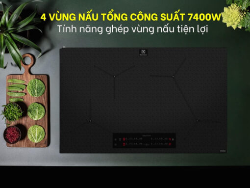 4 vùng nấu tổng công suất 7400W, tính năng ghép vùng nấu