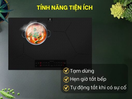 Bếp từ Electrolux EHI845BB cho phép hẹn giờ nấu độc lập trên từng vùng nấu, thời gian hẹn tối đa 99 phút. Bạn có thể cài đặt hẹn giờ cho món ăn trong khung thời gian này, tùy theo yêu cầu món ăn, và bếp sẽ tự động tắt khi hết thời gian đếm ngược. Khi hẹn giờ, bạn có thể rời bếp để làm việc khác mà không cần giám sát thường xuyên, cũng không sợ việc quên tắt bếp gây cháy nồi, hỏng món ăn.