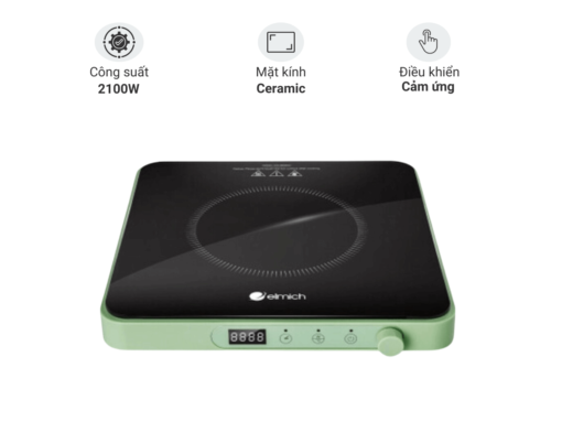 Bếp từ Elmich ICE-3879MG thuộc bộ sưu tập mới nhất của Elmich, với thiết kế hướng đến sự sang trọng, màu sắc thời thượng với gam màu xanh ngọc bắt mắt, mặt kính đen bóng tạo điểm nhấn tinh tế cho không gian bếp. Cùng với thiết kế bếp đơn nhỏ gọn, dễ dàng lắp đặt mà không chiếm nhiều không gian diện tích.