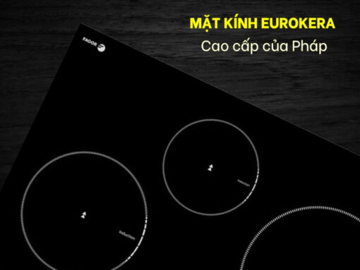 Bên cạnh đó là khả năng chịu lực cao, bạn có thể thoải mái sử dụng nồi nấu trên cả 3 vùng nấu cùng lúc mà không lo trọng lượng lớn từ xoong nồi làm hỏng mặt kính. Mặt kính EuroKera trên bếp từ này còn được hoàn thiện với độ nhẵn mịn cao, hạn chế trầy xước, dễ dàng vệ sinh, lau chùi.