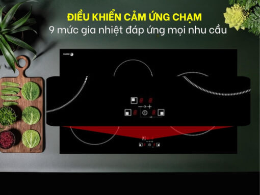 Với hệ thống điều khiển cảm ứng nhanh nhạy, mượt mà, bạn dễ dàng thực hiện mọi điều khiển trên bếp chỉ với thao tác chạm nhẹ trên thanh điều khiển.