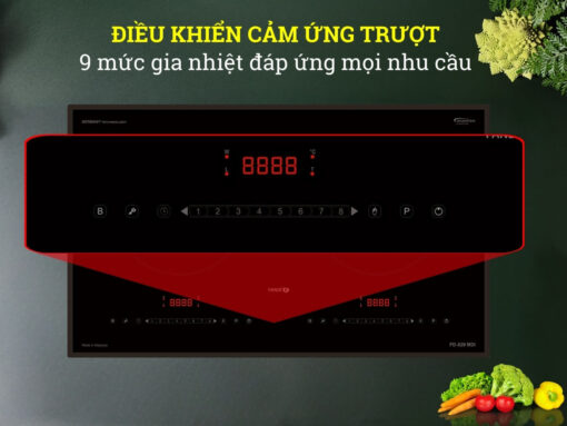 Bếp từ Fandi FD-829MDI thiết kế để hướng đến trải nghiệm tiện lợi nhất cho người dùng, với 2 bảng điều khiển được thiết kế riêng cho 2 vùng nấu. Khi nấu cùng lúc cả 2 vùng nấu thì việc điều khiển bếp sẽ dễ dàng và thuận tiện hơn bao giờ hết. Bảng điều khiển dạng cảm ứng trượt, thao tác đơn giản chỉ cần chạm trượt nhẹ ngón tay trên thanh cảm ứng là có thể điều khiển bếp nhanh chóng. ó 9 mức nhiệt trên mỗi vùng nấu để bạn dễ dàng điều chỉnh phù hợp với từng món ăn, giúp đa dạng món ăn cho cả gia đình.