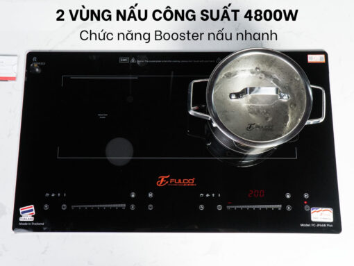 2 vùng nấu công suất 4800W, có chức năng Booster nấu nhanh