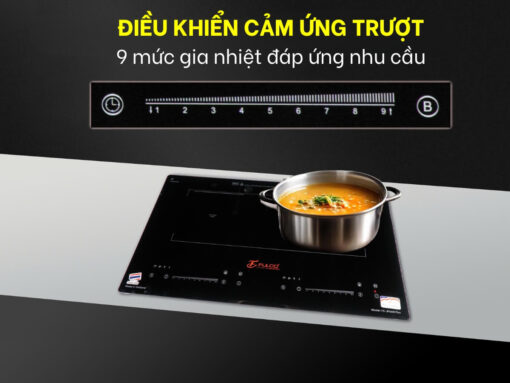 Với hệ thống điều khiển cảm ứng nhanh nhạy, mượt mà, bạn dễ dàng thực hiện mọi điều khiển trên bếp chỉ với thao tác chạm trượt nhẹ trên thanh điều khiển. Đặc biệt là bảng điều khiển được thiết kế riêng cho từng vùng nấu giúp việc điều khiển thuận tiện và dễ dàng hơn bao giờ hết.