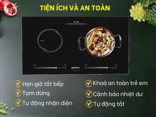 Bếp từ Goldsun GDI7410 có hệ thống cảm biến hiện đại dưới mỗi vùng nấu, có thể phát hiện các sự cố như bếp bị quá nhiệt, quá áp, bị tràn nước, cạn nước hoặc không có nồi đặt trên bếp. Trong những trường hợp này, bếp sẽ tự động ngắt công suất để đảm bảo an toàn cho bếp, an toàn của người dùng cũng như tránh lãng phí điện năng.