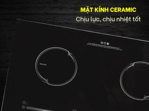Bên cạnh đó là khả năng chịu lực cao, bạn có thể thoải mái sử dụng nồi nấu trên cả 2 vùng nấu cùng lúc mà không lo trọng lượng lớn từ xoong nồi làm hỏng mặt kính. Mặt kính Ceramic trên bếp từ này còn được hoàn thiện với độ nhẵn mịn cao, dễ dàng vệ sinh, lau chùi.