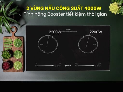 2 vùng nấu công suất 4000W, có chức năng Booster nấu nhanh