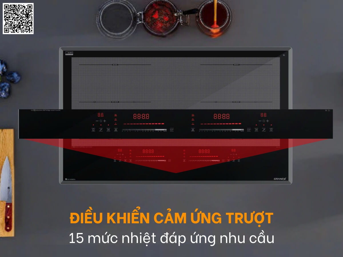 Bếp từ GrandX GX IH838PRO – Series 8 được trang bị hệ thống điều khiển cảm ứng trượt hiện đại, vừa tăng thẩm mỹ cho bếp, vừa tối ưu trải nghiệm người dùng. Với hệ thống điều khiển cảm ứng nhanh nhạy, mượt mà, bạn dễ dàng thực hiện mọi điều khiển trên bếp chỉ với thao tác chạm trượt nhẹ trên thanh điều khiển. Đặc biệt là bảng điều khiển được thiết kế riêng cho từng vùng nấu giúp việc điều khiển thuận tiện và dễ dàng hơn bao giờ hết.