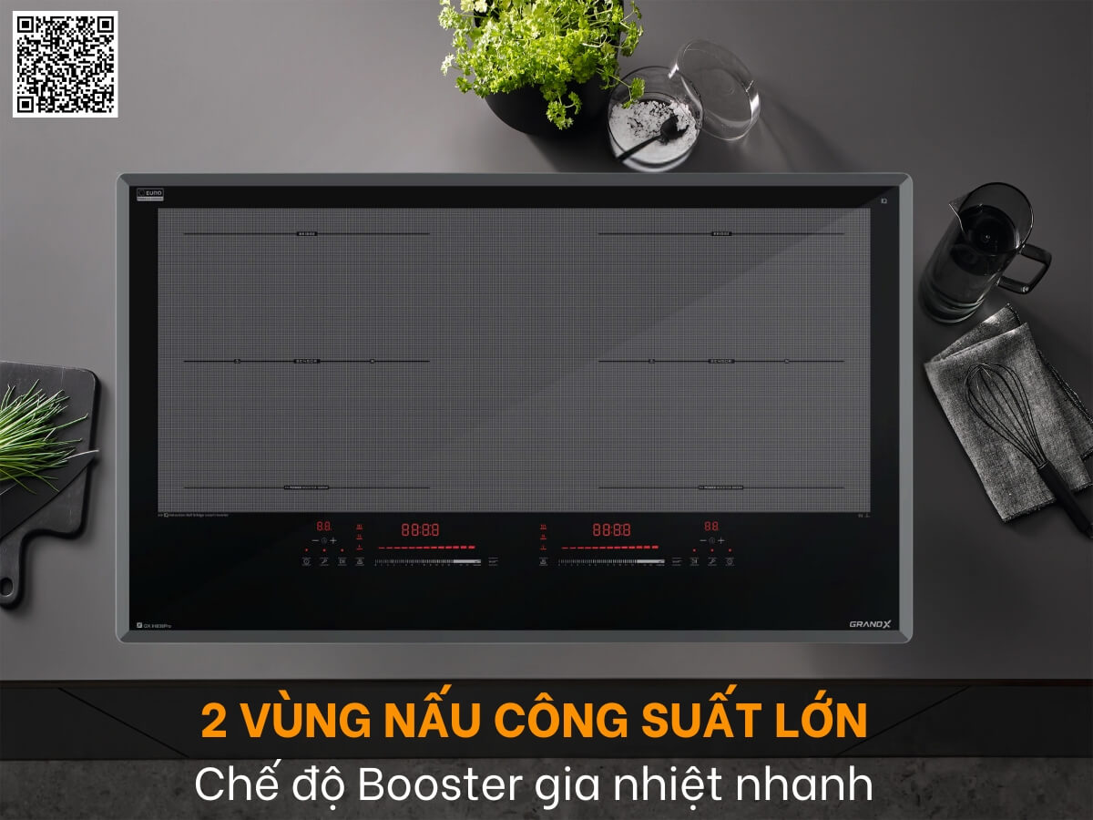 2 vùng nấu mạnh mẽ, Booster nấu siêu nhanh
