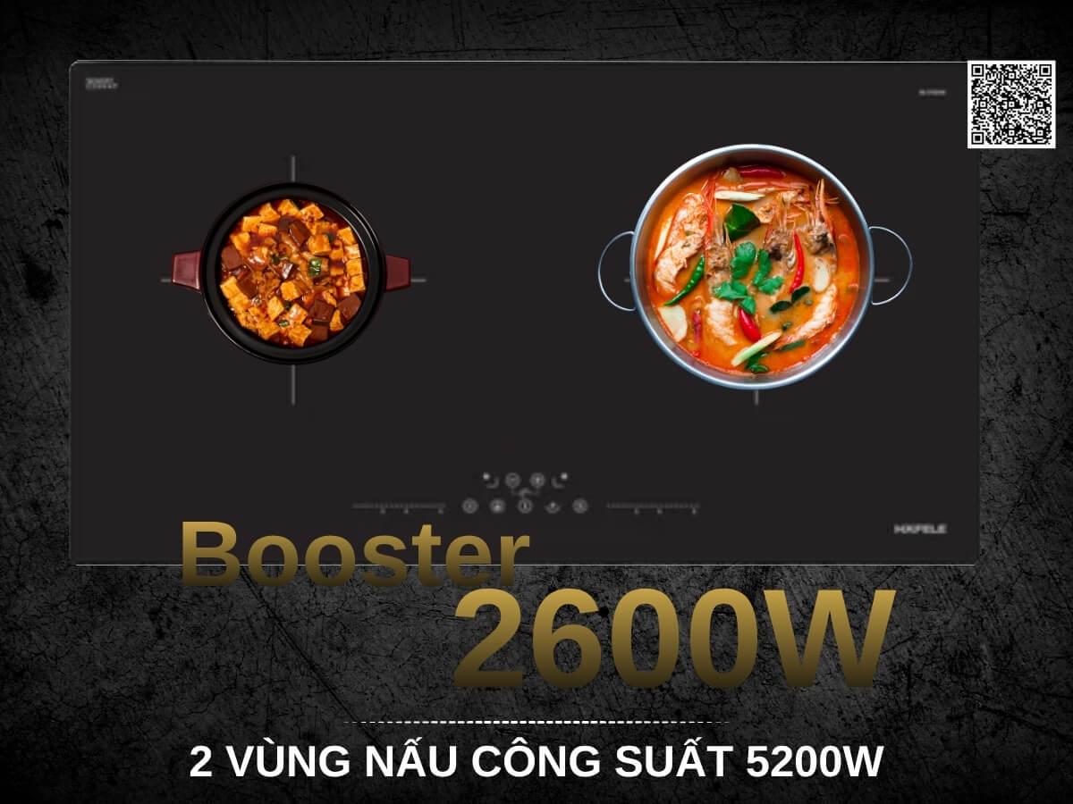 2 vùng nấu công suất 5.2kW, Booster gia nhiệt nhanh