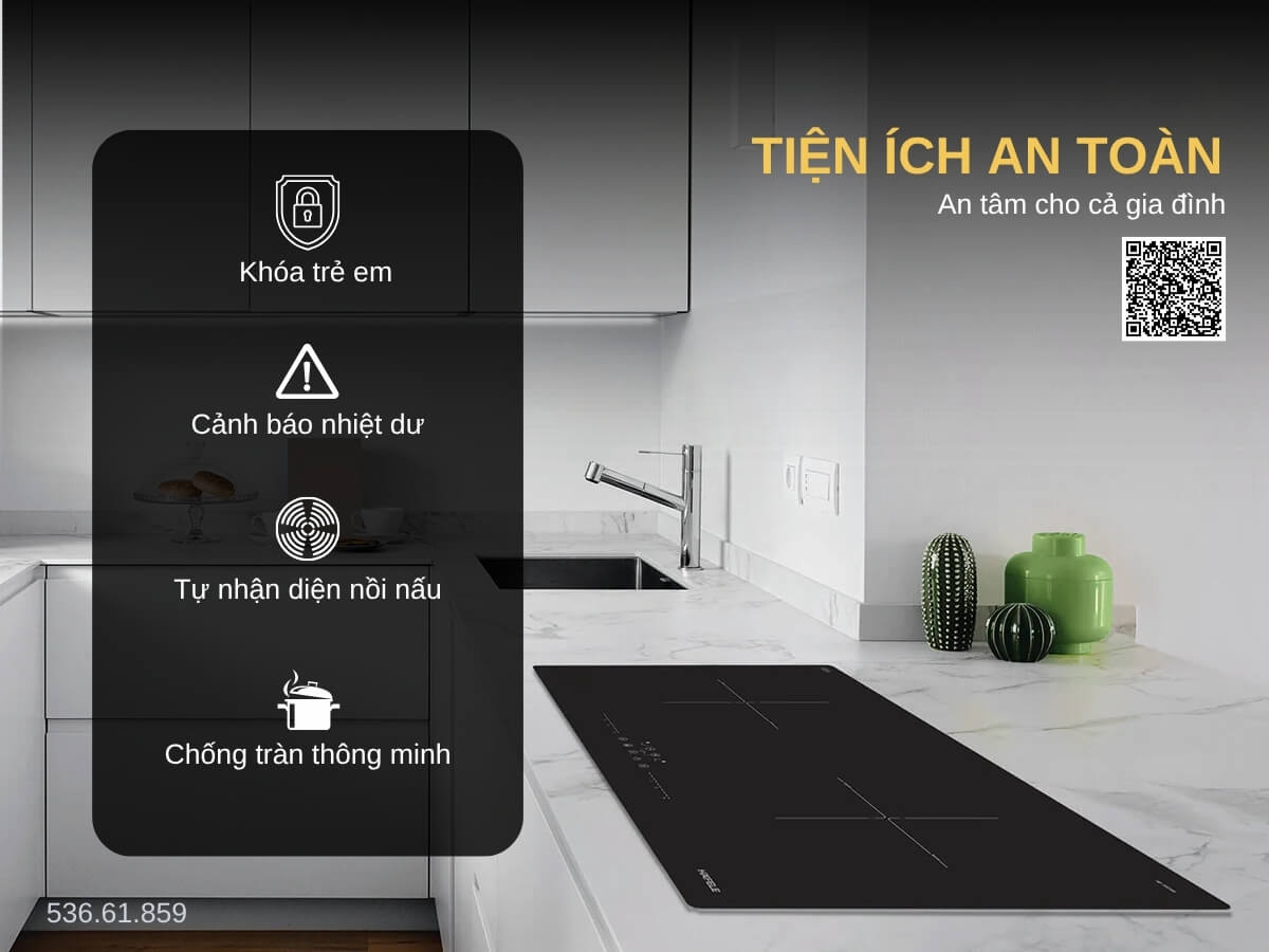 Sau khi nấu, bếp sẽ hiển thị ký hiệu “H” ở vùng nấu còn nóng, cảnh báo người dùng tránh chạm tay vào. Đây là tính năng an toàn nhỏ nhưng cực kỳ quan trọng, giúp phòng tránh bỏng hiệu quả trong quá trình sử dụng hàng ngày.