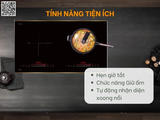 Đặc biệt, cả hai vùng nấu đều được trang bị chức năng Booster gia nhiệt nhanh, khi kích hoạt sẽ lập tức nâng công suất lên mức cực đại, giúp đun sôi nước hay làm nóng chảo dầu trong thời gian ngắn nhất.