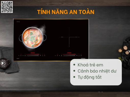 Khi kích hoạt tính năng khoá trẻ em, bảng điều khiển sẽ bị vô hiệu hóa để ngăn trẻ em đùa nghịch hay tự ý điều khiển bếp. Bạn cũng có thể vệ sinh bếp một cách thuận tiện khi đang nấu nướng mà không lo vô tình chạm vào bàn phím gây thay đổi cài đặt nấu.