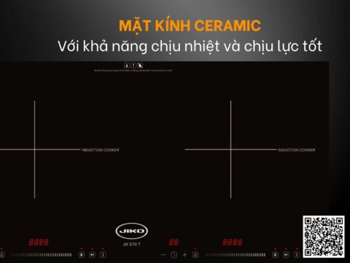 Bếp từ Jiko này được trang bị mặt kính chất lượng cao Kanger. Đây là loại mặt kính nổi tiếng là có độ bền cao, khả năng chịu lực và chịu nhiệt cực tốt, chịu được trọng lượng lớn từ xoong nồi, không tự nứt vỡ dưới tác động nhiệt độ cao hay sốc nhiệt.