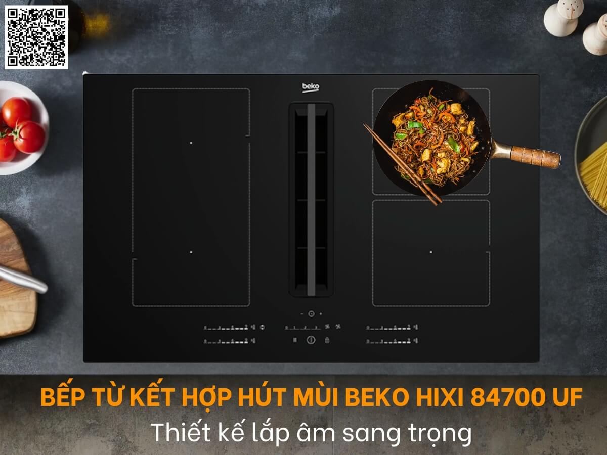 Bếp từ kết hợp hút mùi Beko Hixi 84700 UF thiết kế lắp âm 2 trong 1 hiện đại, sang trọng