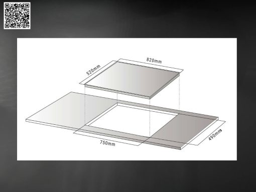 - Kích thước mặt kính: Rộng 820 x Sâu 520 x Cao 223 mm