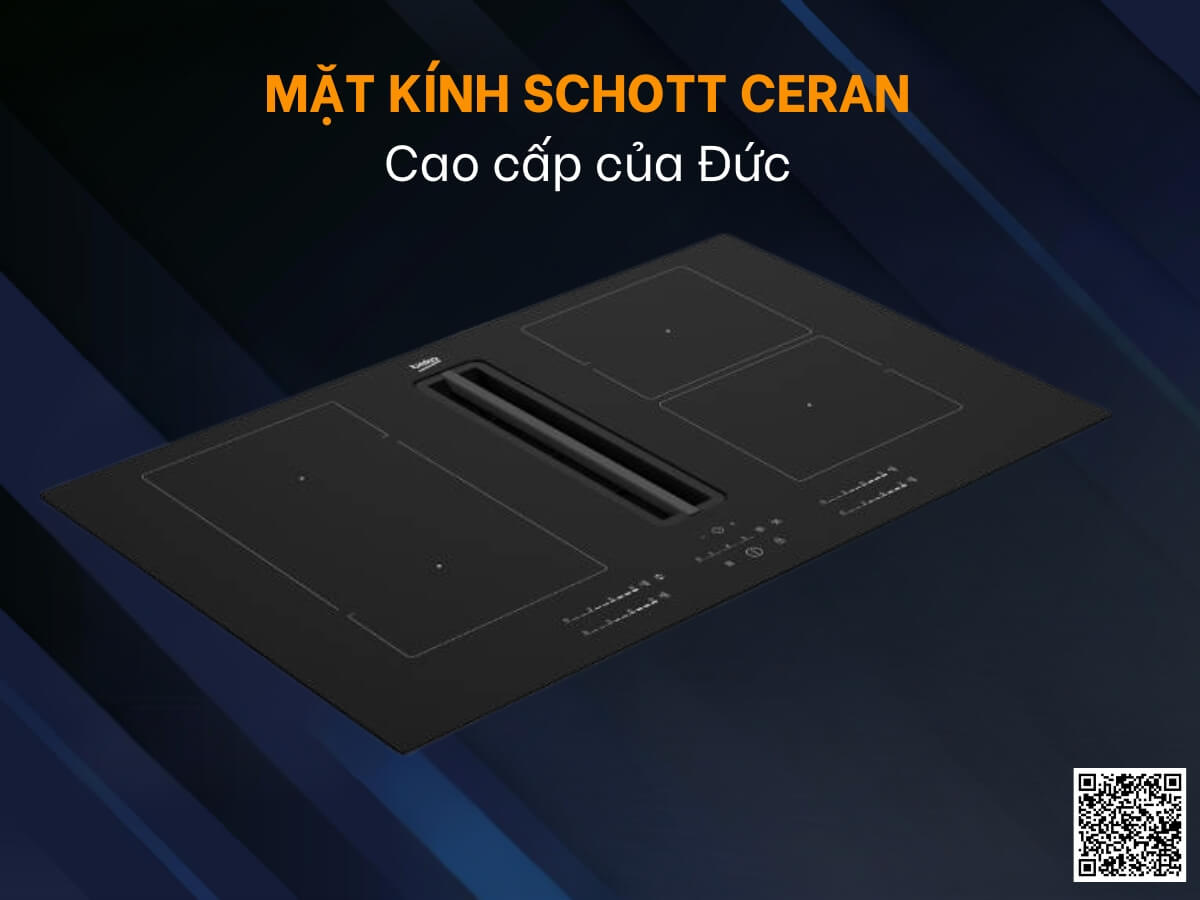 Bếp từ kết hợp hút mùi Beko Hixi 84700 UF được trang bị mặt kính Schott Ceran là loại mặt kính cao cấp của Đức, được trang bị trên nhiều bếp từ hiện đại. Mặt kính này được chuyên dùng trên bếp từ bởi sở hữu nhiều đặc tính nổi bật về chất lượng cũng như độ bền.