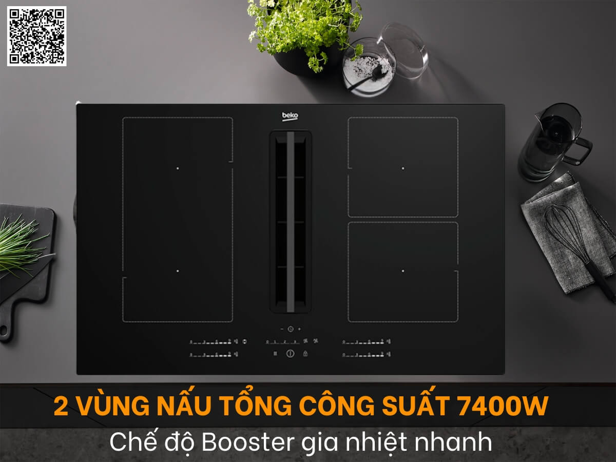 Bếp từ kết hợp hút mùi Beko Hixi 84700 UF được thiết kế với tổng công suất 7400W. Mỗi vùng nấu đều có thể đẩy công suất lên mức cực đại đến 3100W với chức năng gia nhiệt nhanh Booster. Bạn chỉ cần kích hoạt chức năng này chỉ với một thao tác, vùng nấu sẽ lập tức được tăng cường công suất giúp nấu nhanh đến 50%, tiết kiệm được nhiều thời gian cho người nội trợ.