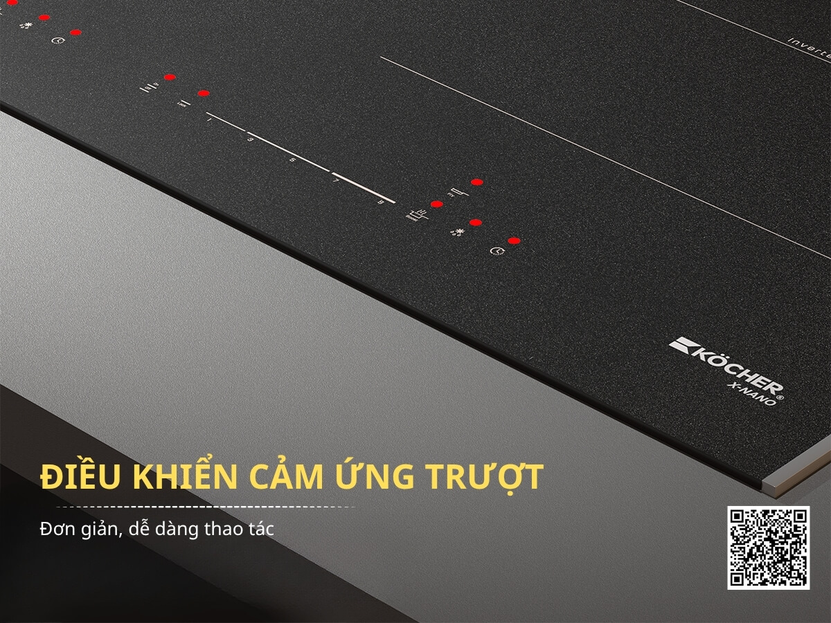 Bếp từ Kocher X-NANO 6 Plus được trang bị bảng điều khiển cảm ứng dạng trượt (Slide Control) siêu nhạy, giúp thao tác điều chỉnh công suất, nhiệt độ trở nên trực quan và chính xác chỉ với một lần chạm nhẹ.