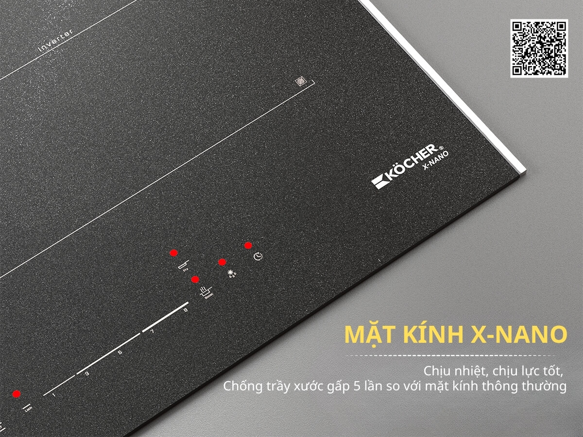 Điểm nhấn đặc biệt của bếp từ Kocher X-NANO 6 Plus chính là mặt kính X-NANO độc quyền, ứng dụng công nghệ Pháp tiên tiến. Loại kính này có khả năng chống trầy xước gấp 5 lần so với mặt kính thông thường, đồng thời chịu sốc nhiệt và chịu va đập cực tốt.