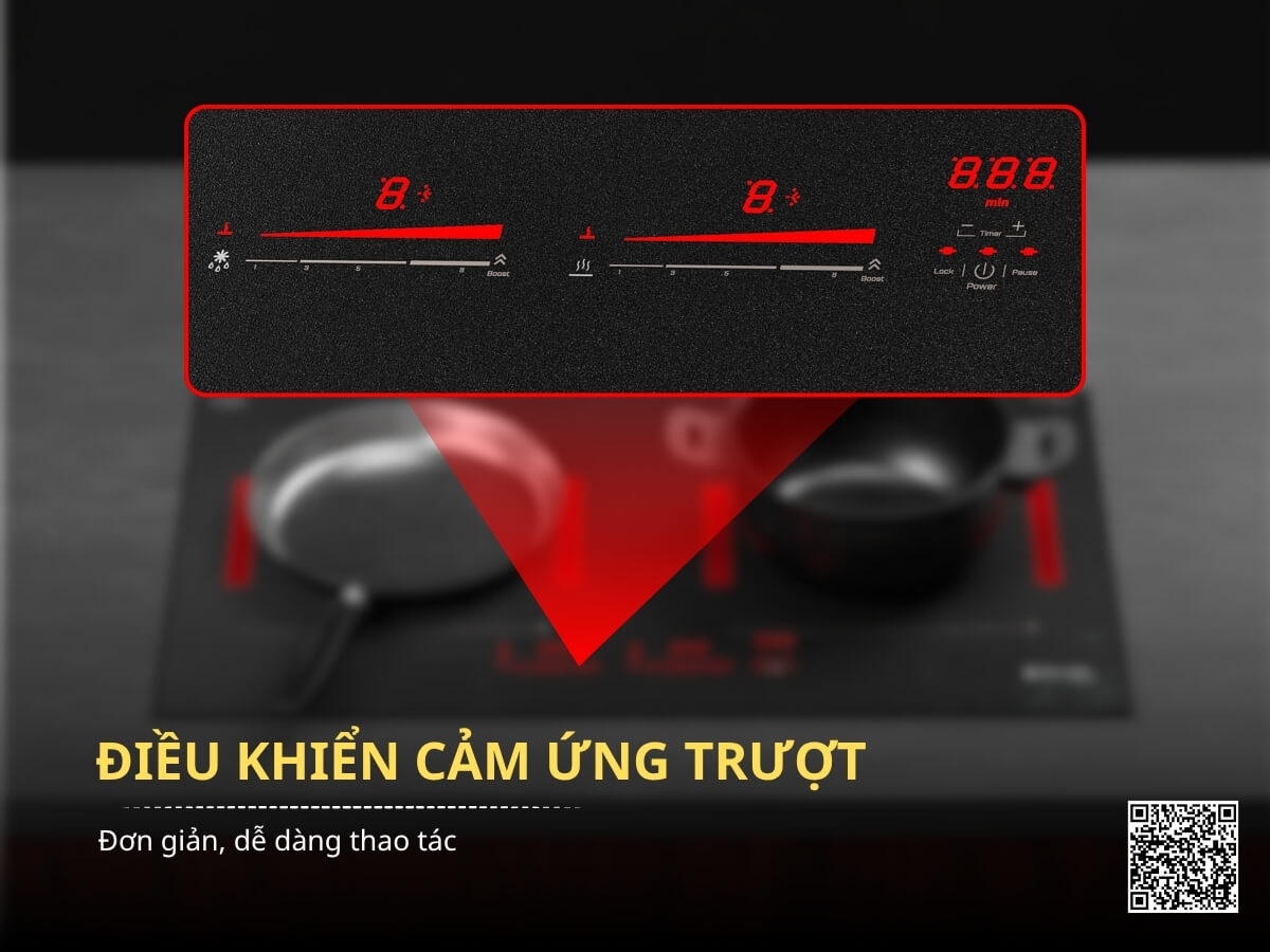 Hệ thống cảm biến thông minh của bếp chỉ cho phép hoạt động khi có nồi thích hợp đặt trên vùng nấu. Điều này không chỉ giúp tiết kiệm điện năng mà còn đảm bảo an toàn tuyệt đối, tránh việc bếp nóng khi không có nồi hoặc vô tình chạm vào bề mặt, đồng thời nâng cao hiệu quả nhiệt lượng truyền vào thức ăn.