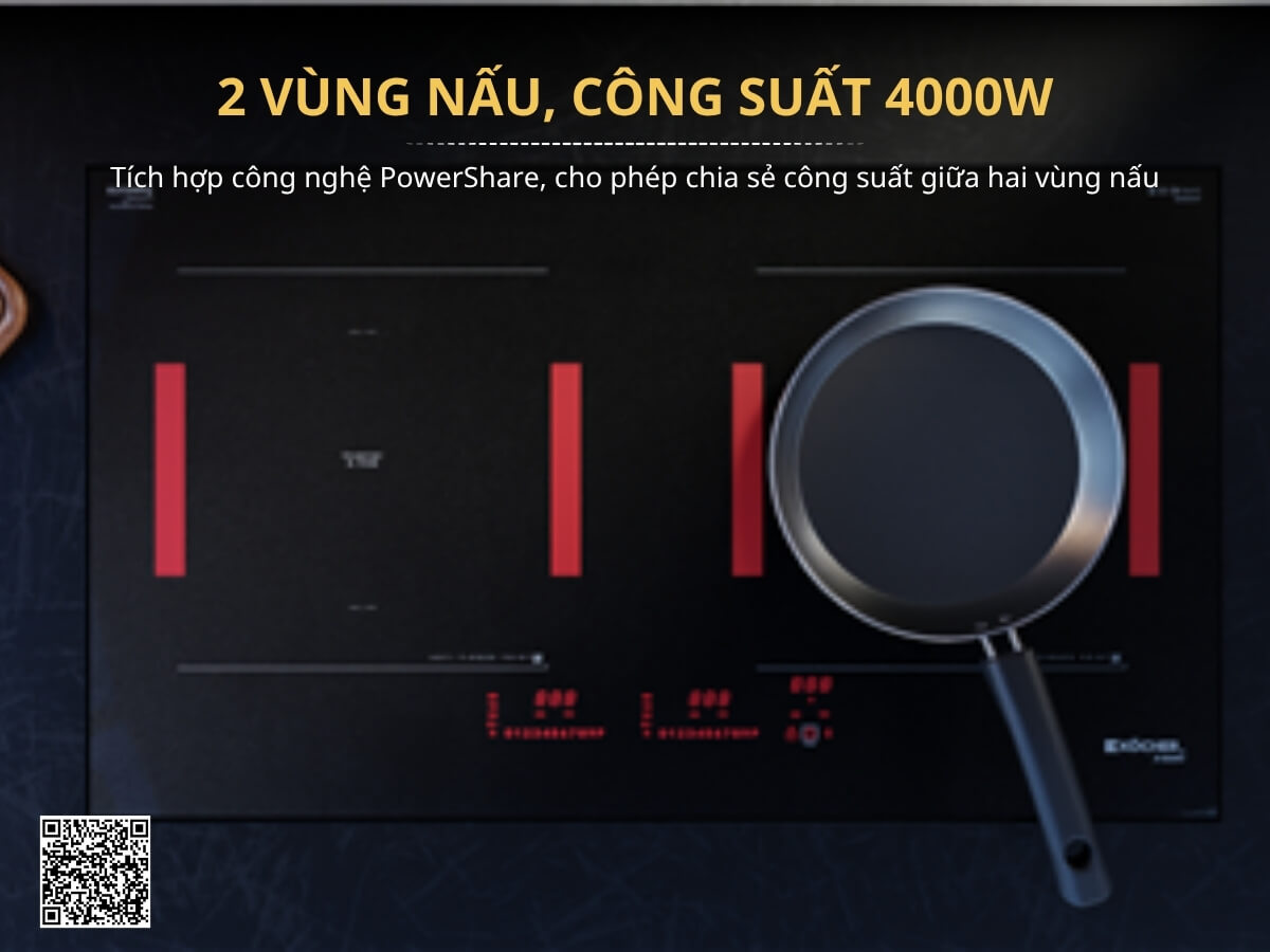 2 vùng nấu tiện lợi, công suất 4000W với công nghệ PowerShare linh hoạt