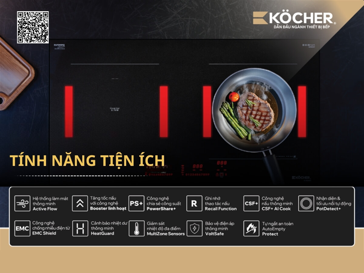 Công nghệ PowerShare không chỉ giúp bếp từ Kocher X-NANO 9 vận hành mượt mà hơn mà còn nâng cao tuổi thọ linh kiện, mang đến trải nghiệm nấu ăn linh hoạt, hiệu quả và an toàn tuyệt đối.