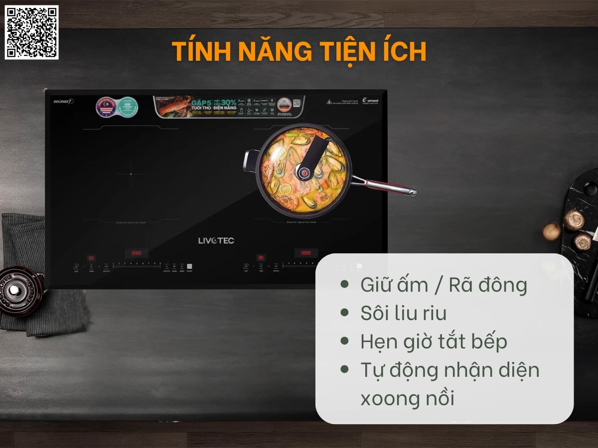 Bếp từ Livotec LID-990M ứng dụng công nghệ thông minh, chỉ sinh nhiệt khi phát hiện có nồi nấu tương thích đặt lên trên (chỉ sử dụng loại nồi có đáy từ). Ngay khi bạn nhấc nồi ra khỏi bếp, vùng nấu sẽ tự động tạm ngưng hoạt động. Cơ chế này không chỉ giúp nhiệt lượng tập trung tối đa vào đáy nồi, tăng hiệu suất nấu nướng và tiết kiệm điện năng vượt trội, mà còn mang lại sự an toàn tuyệt đối, ngăn ngừa nguy cơ bị bỏng do vô tình chạm tay vào vùng nấu khi không có nồi.