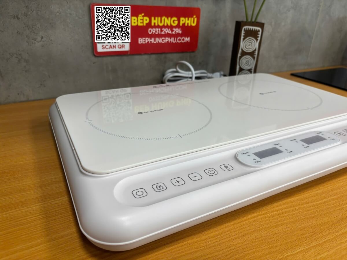 Bếp từ Lumias LK225 Plus thiết kế để bàn với mặt kính Ceramic màu trắng sang trọng, bền bỉ. Bếp có 2 vùng nấu tổng công suất 3500W giúp nấu nướng nhanh chóng, tiện lợi. Bếp còn có nhiều tính năng tiện ích và an toàn như: hẹn giờ đến 240 phút, khoá trẻ em, tự động tắt bếp khi quá nhiệt…