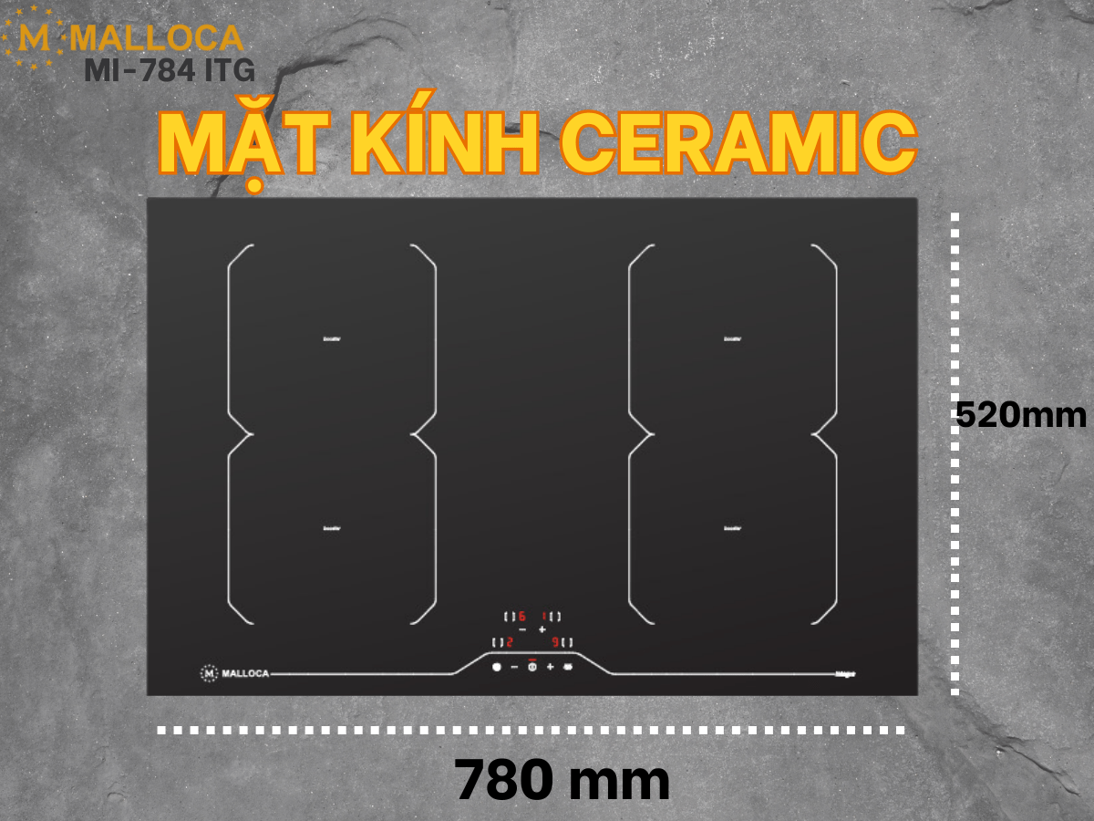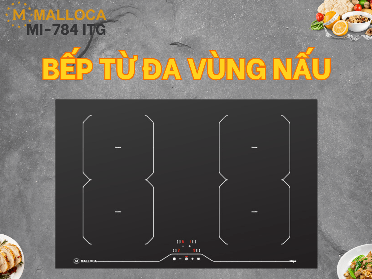 Bếp từ Mallcoca MI-784 ITG thiết kế sang trọng, vùng nấu linh hoạt