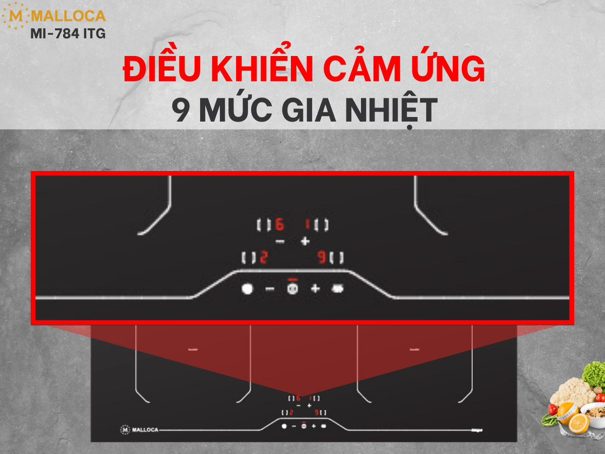 Với bếp từ Mallcoca MI-784 ITG, thao tác điều khiển và sử dụng bếp cực dễ nhờ hệ thống bảng điều khiển cảm ứng chạm hiện đại. Chỉ với thao tác chạm nhẹ trên màn hình là có thể điều khiển bếp được nhanh chóng, tiện lợi và dễ dàng. Bên cạnh đó, bếp còn thiết kế bảng đèn LED hiển thị số giúp bạn dễ dàng quan sát và sử dụng, kể cả người lớn tuổi.