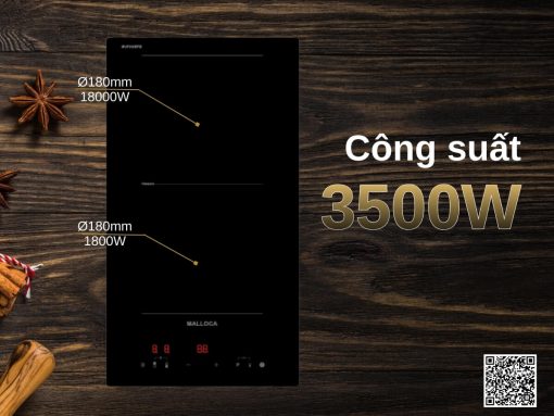 Bếp từ Malloca MDI 302 FZ trang bị 2 vùng nấu từ Ø180mm, mỗi vùng đạt công suất 1.8kW, tổng công suất 3.5kW, cho phép bạn nấu ăn nhanh chóng và hiệu quả. Khi cần gia nhiệt nhanh, chức năng Booster sẽ tăng công suất tức thời, giúp nước sôi nhanh, món xào nấu chín chỉ trong vài phút. Đây là lựa chọn lý tưởng cho các bữa ăn bận rộn nhưng vẫn muốn giữ nguyên hương vị và độ tươi ngon của thực phẩm.