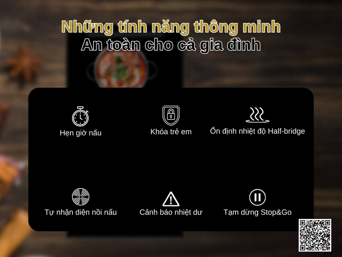 Khóa phím an toàn giúp vô hiệu hóa bảng điều khiển, tránh việc thay đổi mức công suất ngoài ý muốn. Đây là tính năng quan trọng cho các gia đình có trẻ nhỏ, giúp đảm bảo an toàn và tránh các tai nạn do bấm nhầm.