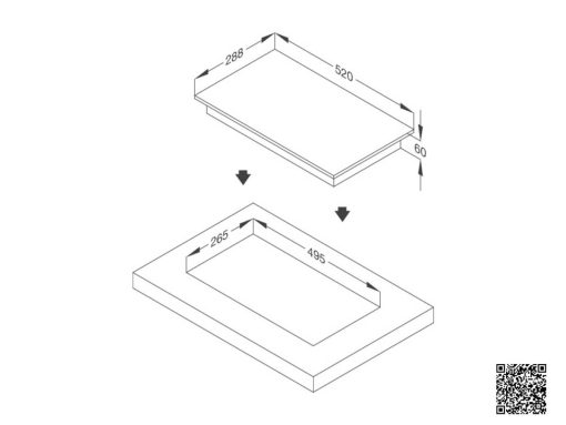 - Kích thước bếp: 288R x 520S x 60Cmm