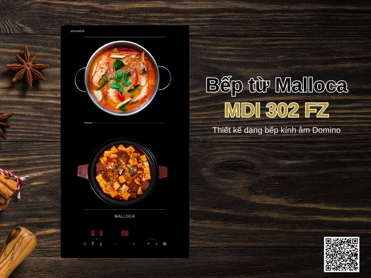 Bếp điện từ Malloca MDI 302 FZ thiết kế lắp âm hiện đại, sang trọng
