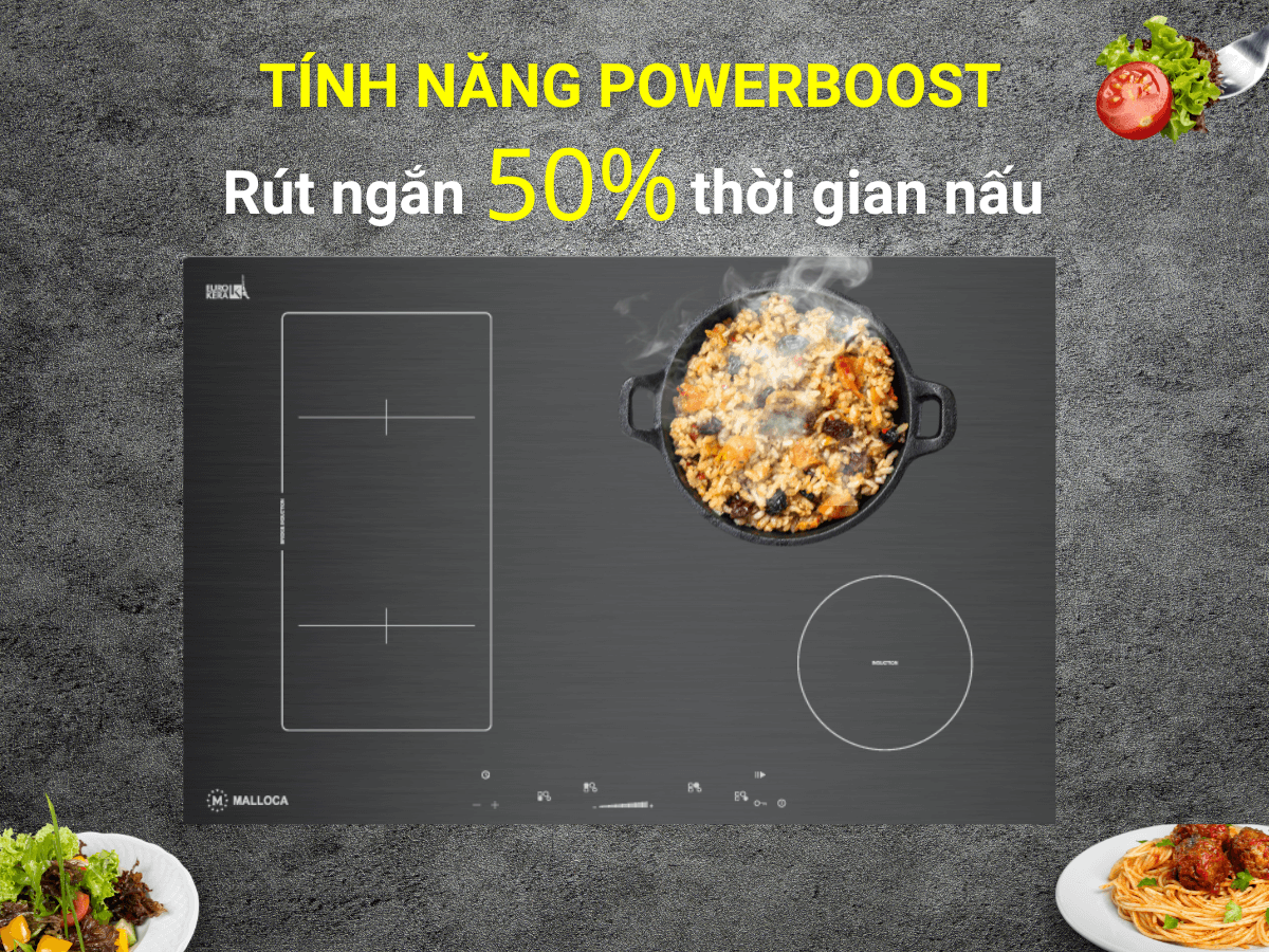 Chức năng gia nhiệt nhanh Booster được trang bị trên bếp từ Malloca MH-04I BM, đẩy nhanh thời gian nấu đến hơn 50%. Tính năng này vô cùng hữu ích khi người nấu cần đun nấu gấp và phải nhanh chóng hoàn thiện món ăn. Nó giúp tiết kiệm, rút ngắn thời gian nấu ăn vô cùng hiệu quả