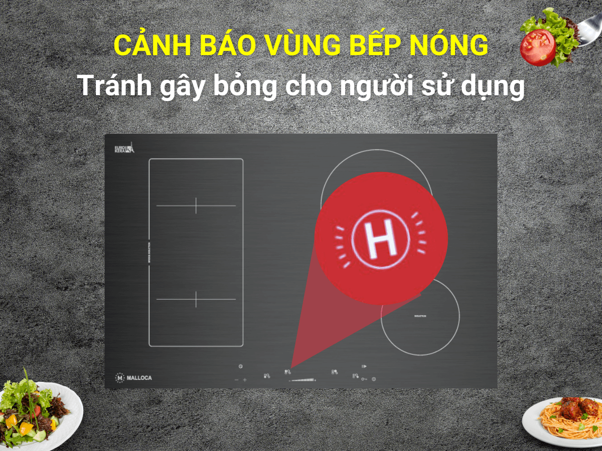 Sau khi nấu xong, bề mặt vùng nấu cũng sẽ vẫn còn nhiệt độ cao. Lúc này đèn cảnh báo nhiệt dư sẽ sáng lên, cảnh báo người dùng về vùng nấu vẫn còn nóng và chỉ tắt khi vùng nấu đã nguội hoàn toàn. Nhờ tính năng này, bạn sẽ luôn biết vùng nấu nào đang nóng, tránh vô tình chạm vào vị trí này và gây ra các vết bỏng.