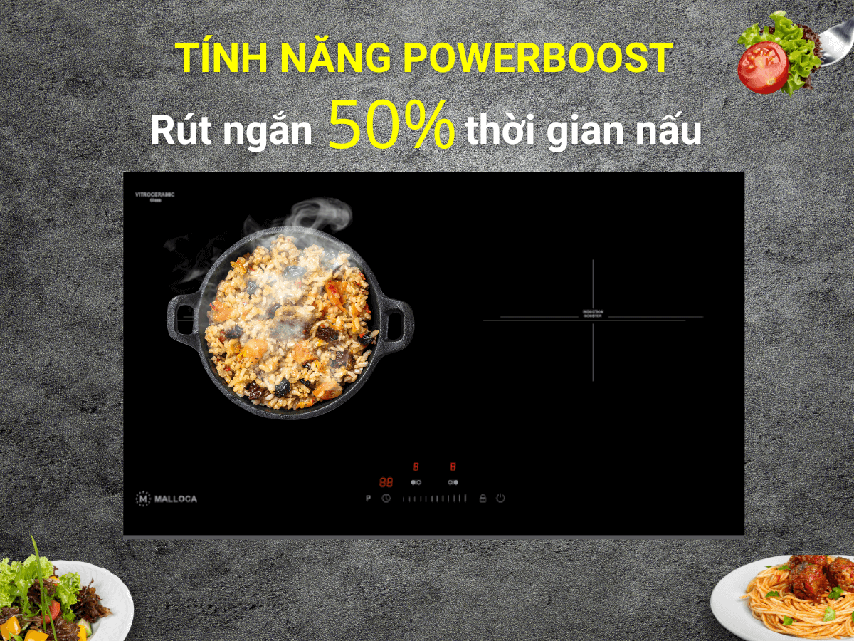 Tính năng Booster của Malloca MH-732 IN rất hữu ích khi bạn muốn nấu một bữa ăn trong thời gian ngắn hoặc cần nhanh chóng đạt được nhiệt độ mong muốn. Bạn có thể nhanh chóng đun sôi nước để nấu mì, nấu các món hấp hay các món ăn cần nhiệt độ cao.