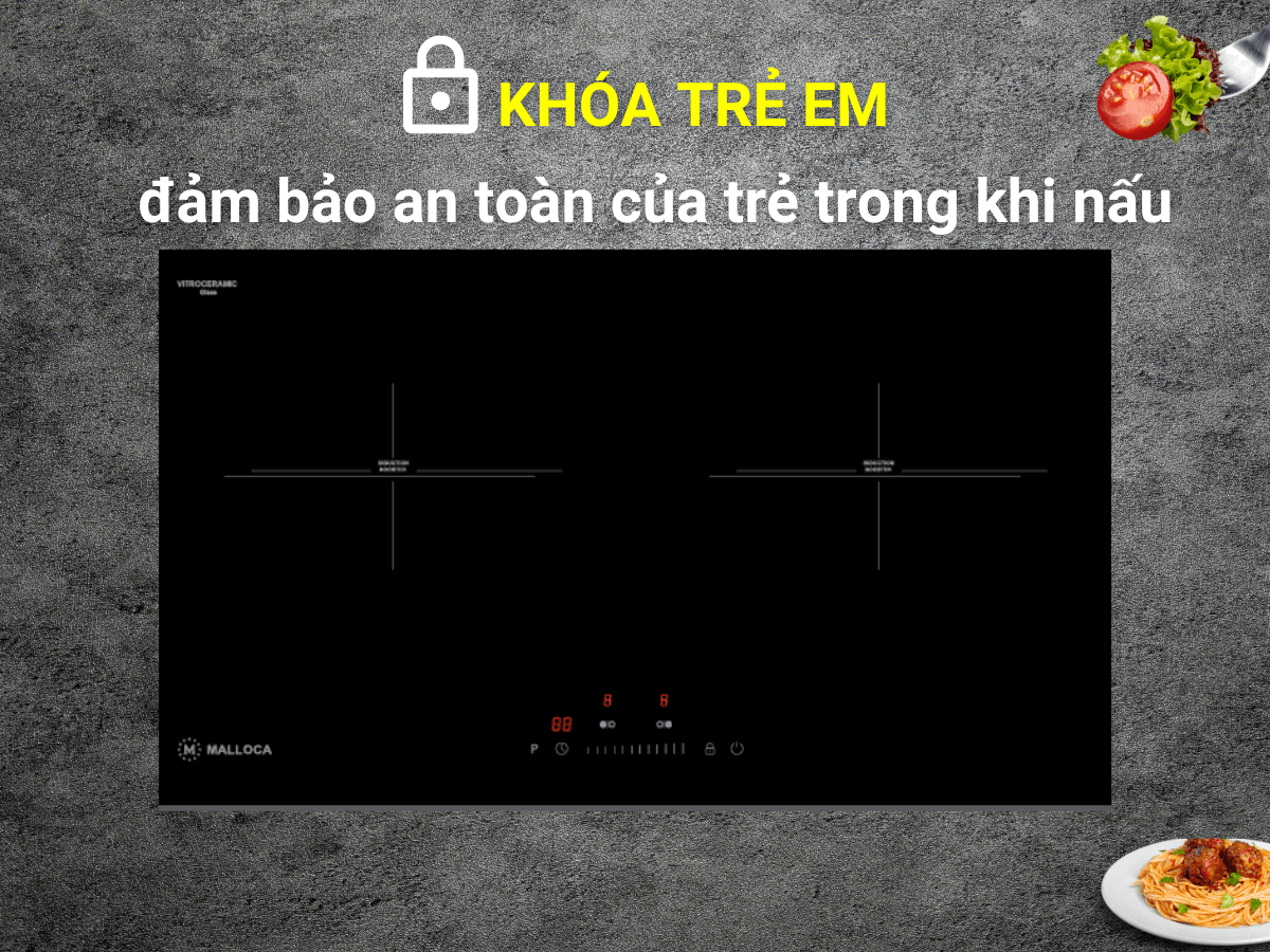 Khi tính năng khóa trẻ em được kích hoạt, bếp từ sẽ bị vô hiệu hoá bảng điều khiển. Điều này đảm bảo rằng sẽ không có bất kỳ thao tác điều khiển vô ý nào trên bếp, để quá trình nấu được diễn ra theo đúng cài đặt ban đầu. Rất hữu ích với những gia đình có trẻ nhỏ, trẻ không thể tự ý điều khiển bếp khi không có sự giám sát của người lớn.